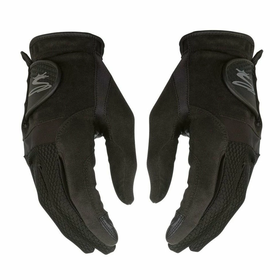Theย Cobra Storm Grip Golf Gloves feature a unique suede in the palm to promote maximum grip even in wet conditions. The tailored cuff helps to provide a better more full fit while the index fingers in these gloves have been designed to be touch screen compatible so you don’t have to remove these gloves to utilise your devices. The black finish and Cobra branding look great with any outfit and promise to keep your hands dry on wet days.